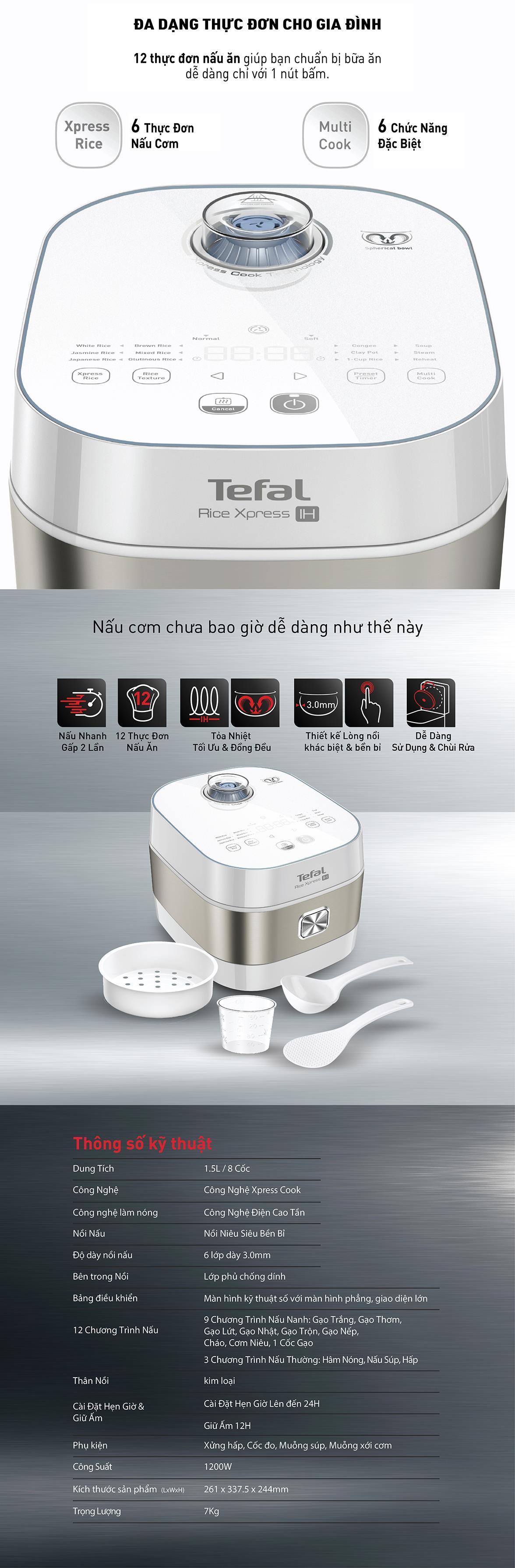 Nồi cơm điện tử cao tần lòng niêu 1.5L Tefal RK762168
