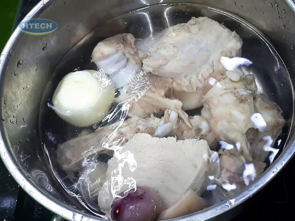 Chần xương qua nước sôi có pha một ít muối và vài lát gừng khoảng 5-7 phút. Khi nước sôi bùng lên và nổi nhiều bọt bẩn, vớt xương ra, rửa sạch lại với nước lạnh. Bước này giúp loại bỏ tạp chất và mùi hôi của xương, làm nước lèo trong và ngọt hơn.