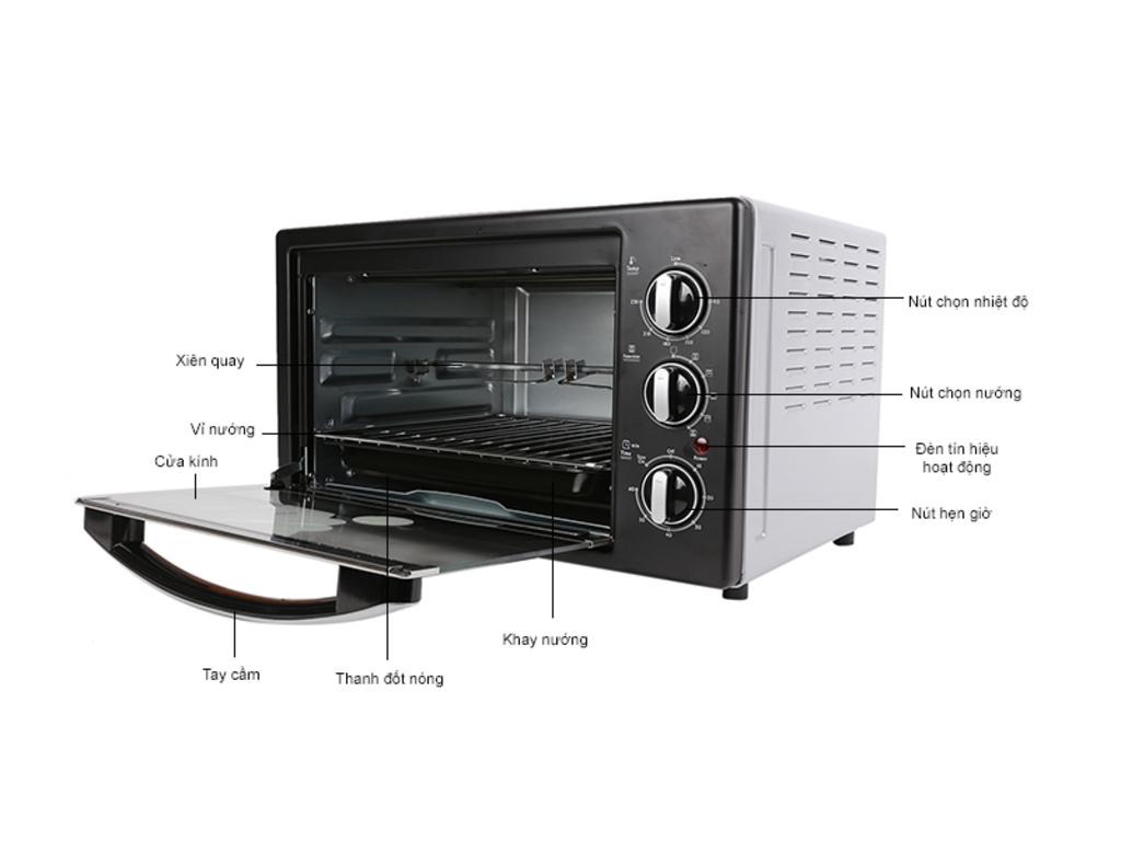 - An toàn: Lò nướng thường được thiết kế với các tính năng an toàn như cửa lò có khóa an toàn, tự động tắt nguồn khi cửa mở, và bảng điều khiển cách nhiệt để tránh tai nạn khi sử dụng.