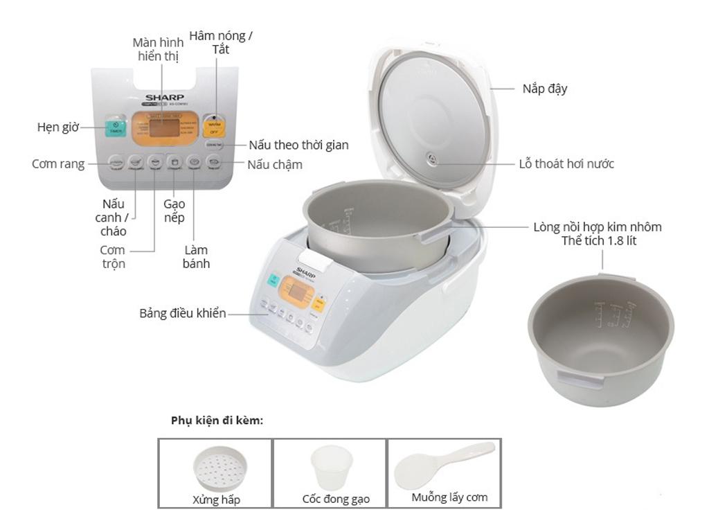 Cách nấu nồi cơm điện tử Sharp KS COM19V như thế nào? Điểm mạnh nồi cơm điện đa năng Sharp KS COM19V là gì? Hướng dẫn vệ sinh nồi cơm điện an toàn - hiệu quả.