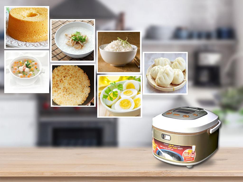 Nếu như nồi cơm điện panasonic tự hào khi được trang bị lên tới 10 chức năng nấu tự động, hay nồi cơm điện tiger tự hào khi nấu được 4 loại gạo khác nhau thì với nồi cơm điện đa năng Sharp KS TH18 bạn có thể tự do sáng tạo với 13 chương trình nấu tự động như: nấu cơm bằng nồi cơm điện, nấu nhanh, nấu gạo trộn, nấu cơm niêu, nấu cháo bằng nồi cơm điện, nấu xôi bằng nồi cơm điện, làm bánh bằng nồi cơm điện,... Thêm vào đó, nồi còn có chế độ vệ sinh tự động vô cùng hữu ích.