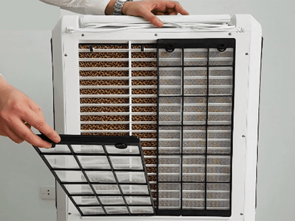 ₋ Bạn cần chú ý thay nước và rửa sạch khay chứa nước, lưới chắn bụi và tấm làm mát quạt hơi nước.