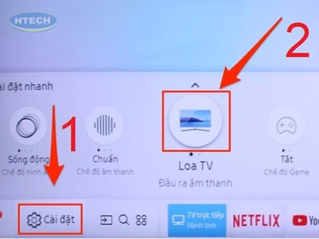 Bước 1: Kích hoạt Bluetooth trên tivi màn hình cong và amply.