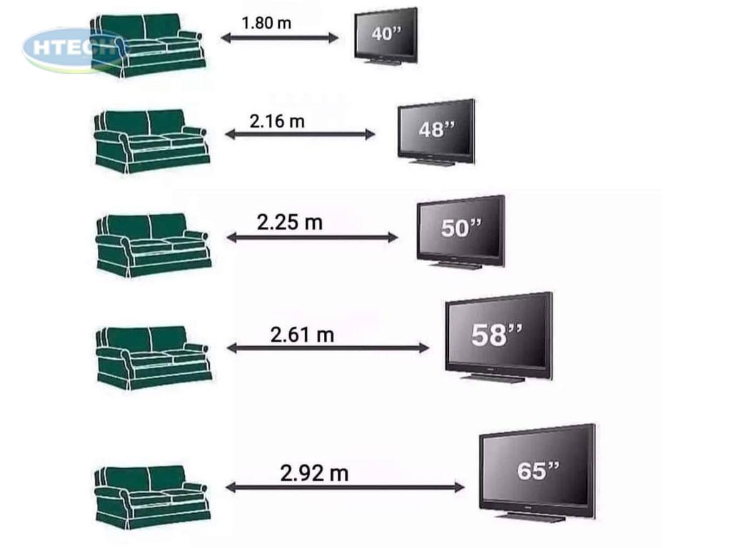Ví dụ: Với tivi 50 inch, khoảng cách xem lý tưởng sẽ từ 1.9m đến 3.2m.