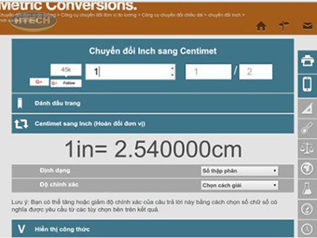 Số cm = Số inch x 2.54.
