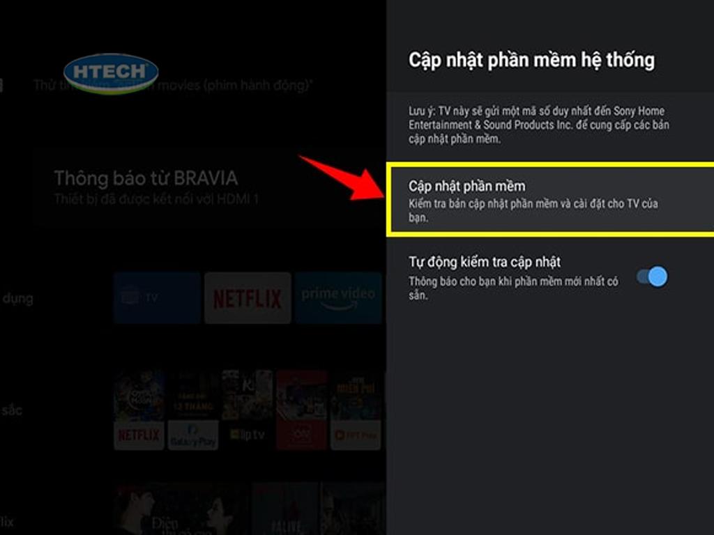 Để tránh và khắc phục lỗi tivi Sony bị treo không điều khiển được bạn hãy đảm bảo rằng hệ thống tivi Sony của bạn luôn được cập nhật mới nhất và hoạt động trơn tru, bạn nên thường xuyên kiểm tra và cập nhật phần mềm tivi Sony. Việc này không chỉ khắc phục các lỗi hiện có như tivi bị treo màn hình mà còn cải thiện hiệu suất và tính ổn định của tivi. Vào phần cài đặt, tìm mục "Cập nhật phần mềm" và kiểm tra xem có bản cập nhật nào chưa.