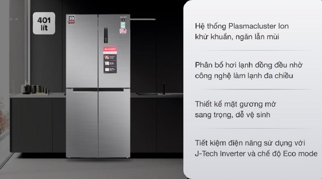 - Tủ lạnh 4 cánh (Multidoor) của Sharp mang đến sự linh hoạt trong việc sử dụng, cho phép người dùng chuyển đổi giữa các ngăn một cách dễ dàng. Với dung tích lớn, thường trên 600 lít, dòng tủ này được trang bị nhiều tính năng thông minh như cảm ứng nhiệt, hệ thống làm lạnh kép, và khả năng điều chỉnh nhiệt độ riêng biệt cho từng ngăn. Đặc biệt, việc lấy thực phẩm ở từng cánh riêng giúp giảm thiểu thất thoát hơi lạnh, tiết kiệm năng lượng và bảo quản thực phẩm tốt hơn.